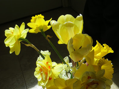 I decided I wanted to repeat the yellow and so I made the dominant center flower yellow. It originally had a yellow pansy where the pink calyx is now. The pansy was so underwhelming.